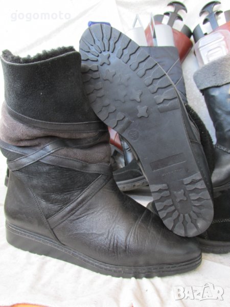 топли боти, ботуши 38 - 39, 100% естествена кожа + велур + 100% естествена вълна - запазени, малко употребявани, без забележки! Без скъсано, без разлепено, без разшито! Моля, имайте в пред вид, че снимките са правени от 20 см., за да са максимално подробни, качествени, а обикновено обувките се гледат от 2 м.