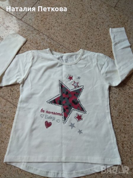 Блузката е нова. 100%памук. Размер по етикет 110. Дънките са размер 92. Дължина 52см.