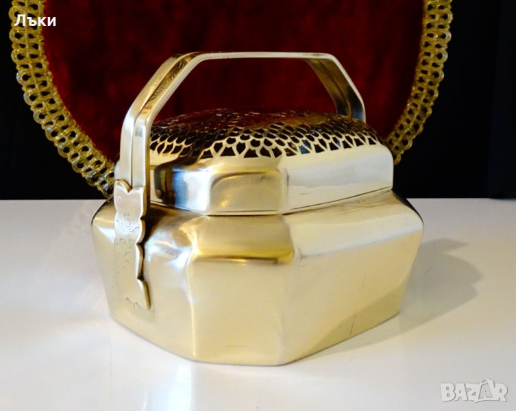 бижута,майсторска ръчна изработка от масивен златен бронз.Има многостенен профил и дизайн на сандъче за съкровища.Дръжката на кутията е стабилно занитена