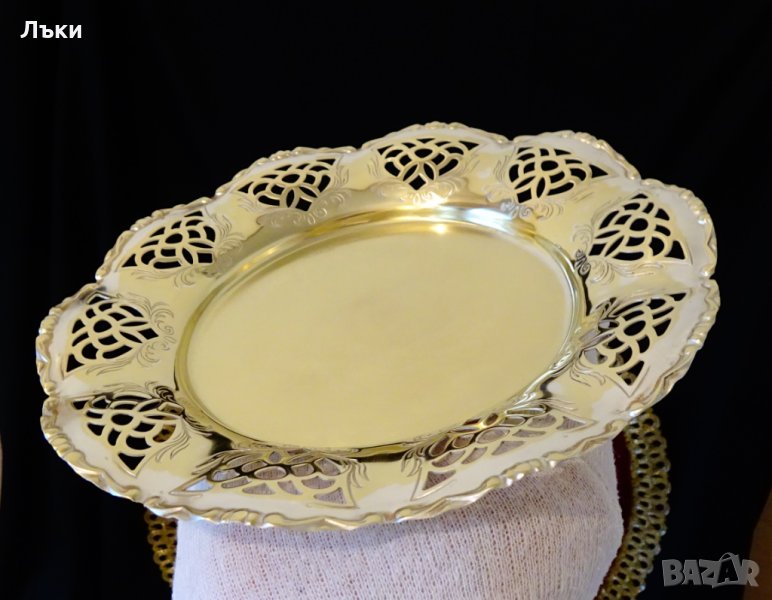 с ажур и релефни орнаменти в стил барок.По края е посребрена с висока проба сребро.Диаметър
