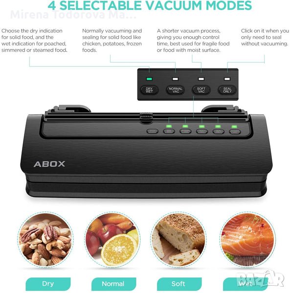 билки и мариновани храни и др. Вакуумният уплътнител ABOX запазва