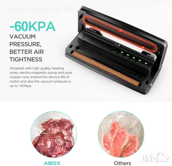 Вакуумна машина ABOX, Запечатване на храни 5 в 1, Вградена резачка