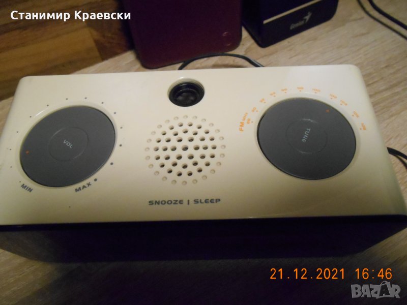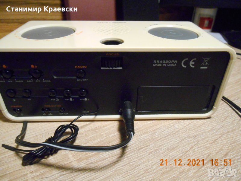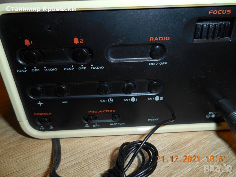 Радиочасовника работи отлично - тест 1 седмица Радиото е аналогово Има 2 аларми и димерна на екрана Часът се прожектира и на тавана Запазен външен вид Много рядък модел на приемлива цена