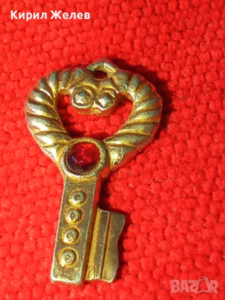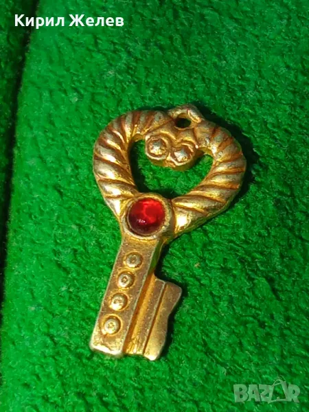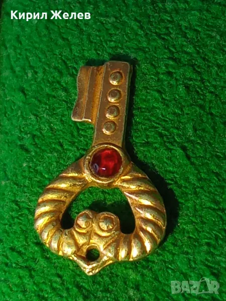 СТАРО ПОЗЛАТЕНО БРОНЗОВО КЛЮЧЕ с ФАСЕТ КРИСТАЛ - АРТ ДЕКО МЕДАЛЬОН 5535