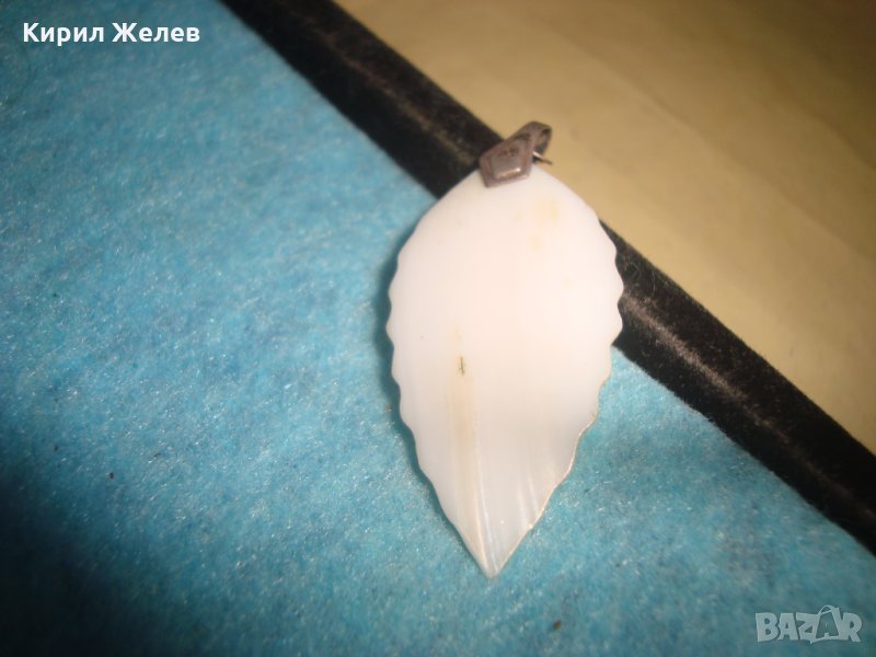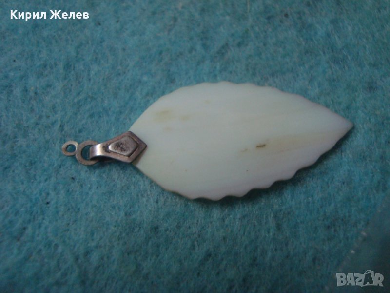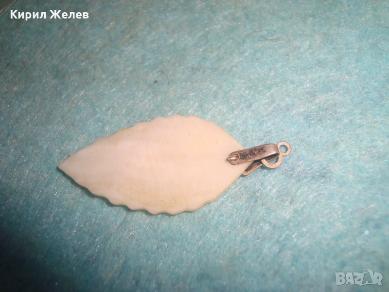 ЛИСТОВИДНО СЕДЕФЕНО УКРАШЕНИЕ РЕТРО МЕДАЛЬОН РЪЧНА СТАРА МАЙСТОРСКА ИЗРАБОТКА 18363