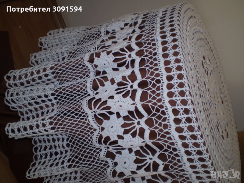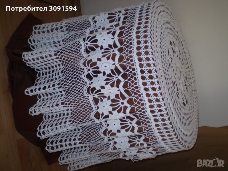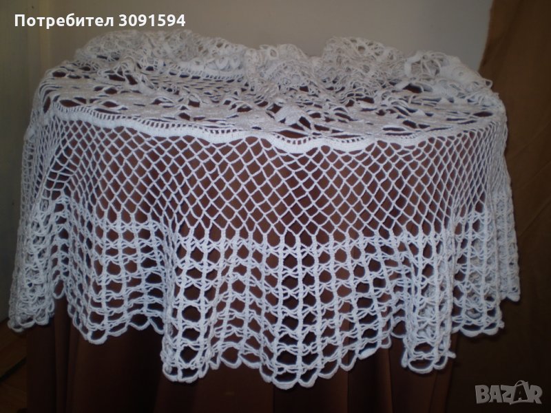 Винтидж ръчно плетена бяла памучна покривка за маса → Обява 35656016
