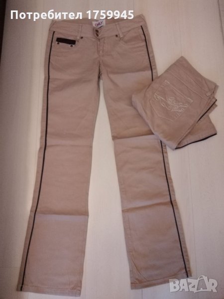 Бежав панталон с кожен кафяв кант отстрани размер по етикет 36 налични 2 броя