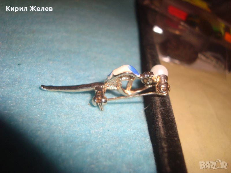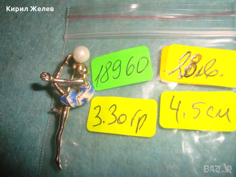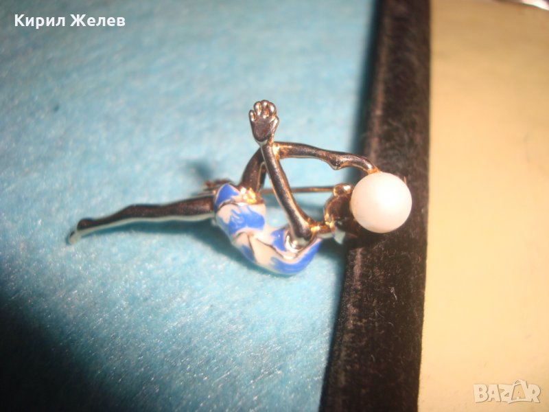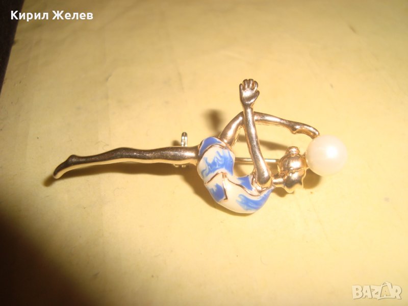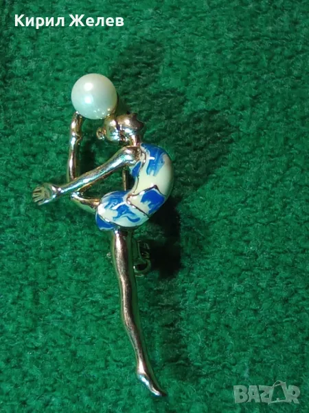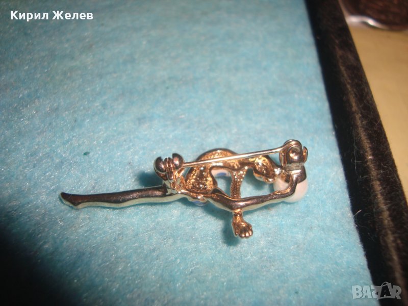 БАЛЕРИНА - ПЕРЛЕНА ПОЗЛАТЕНА НЕЖНА КРАСИВА ФИГУРАЛНА БРОНЗОВА АРТ ДЕКО БРОШКА ЕМАЙЛИРАНА 18960