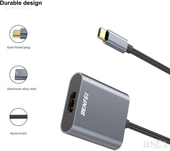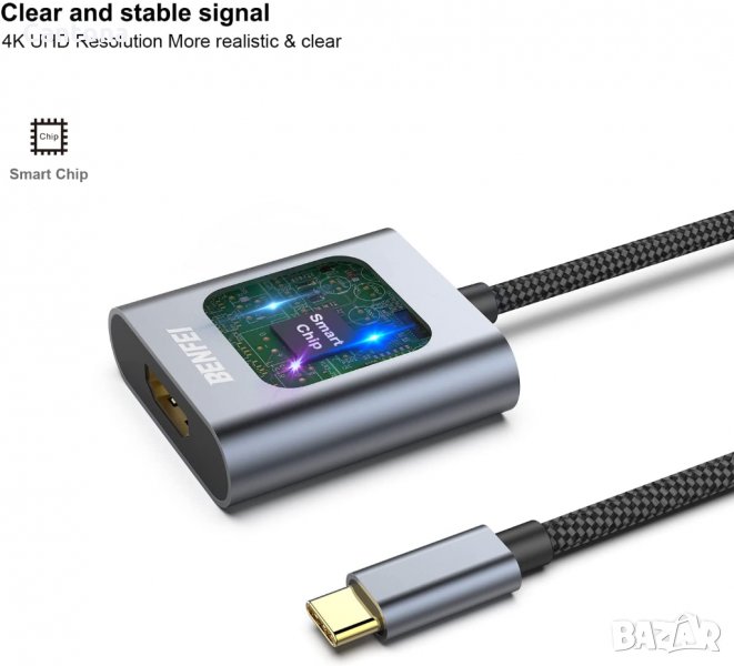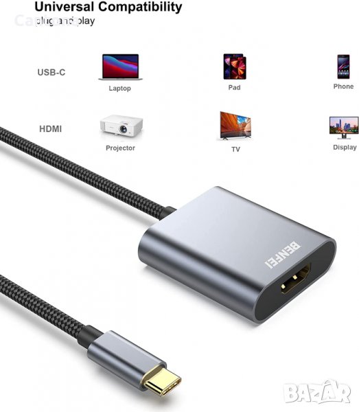 Компактно проектираният преносим адаптер Benfei USB-C към HDMI свързва компютър, настолен компютър, лаптоп или други устройства с USB-C порт към монитор,