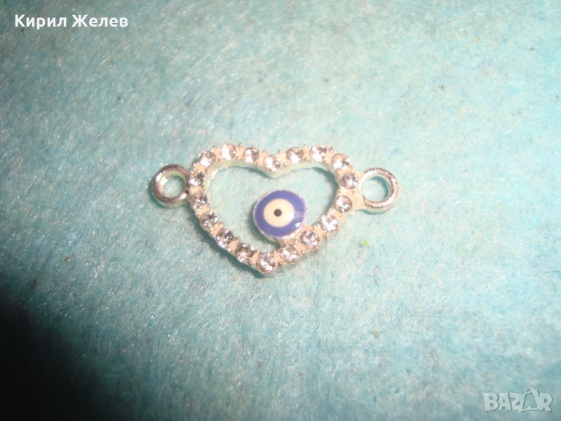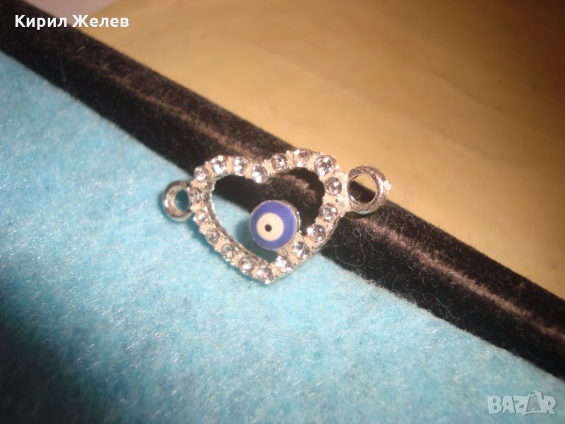 ПОСРЕБРЕНО СЪРЧИЦЕ ОКОТО на НАЗАР - ЕМАЙЛ с ЦИРКОНИ БЕЛ ЕПОК БИЖУ МЕДАЛЬОН ПРОТИВ УРОКИ 25324