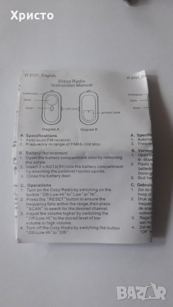Продавам малко радио със слушалки и връзка за носене на врат внос от Дания. Размери 3.5x7x1 cm, работи с 2 батерии AG13 1,5 волта, които не са включени в цената, чисто ново, не е ползвано, само е тествано, че работи.От частна колекция. Имам няколко броя. При покупка на 2 броя - цена 18 евро.