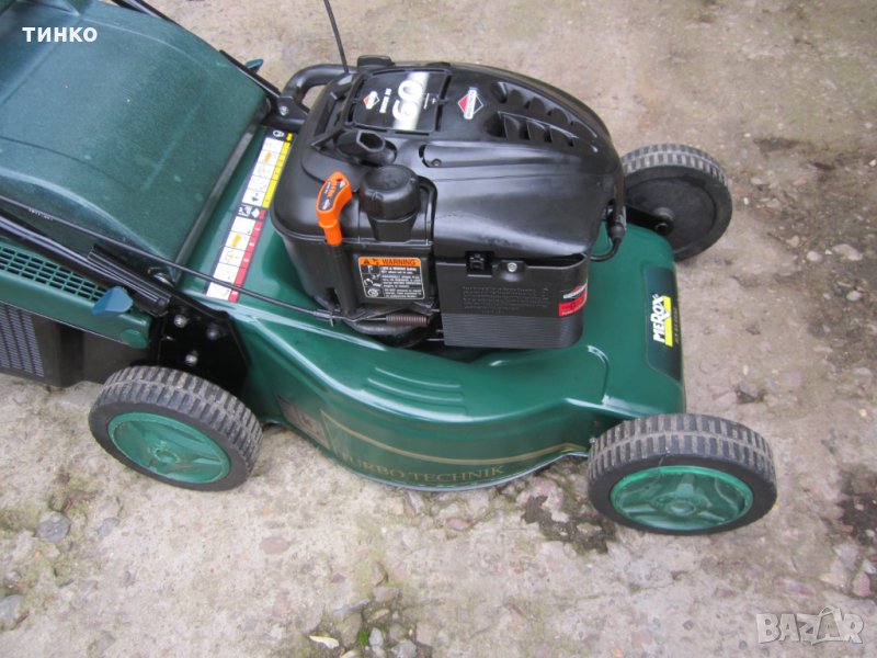 Немска бензинова косачка,самоход,мотор briggs & stratton 6 коня,кош за трева,бутон за регулиране височината на косене,стартер механичен/без акумулатор,при спиране на двигателя стартера се активира/.Внос Германия.Артикулен номер 50211