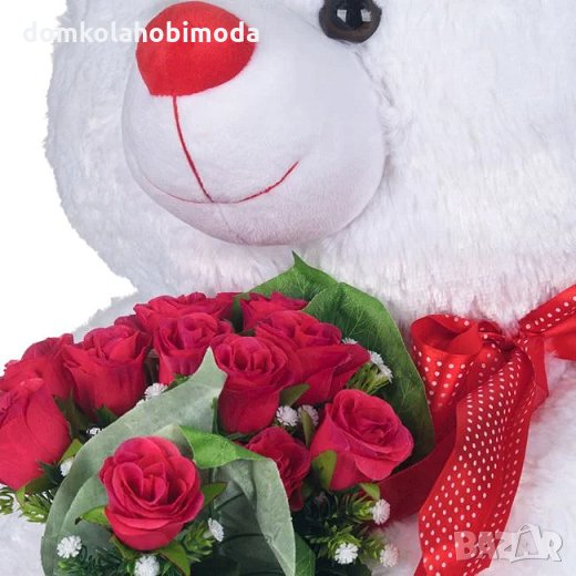 Голямо плюшено мече с букет изкуствени рози, 70 см
