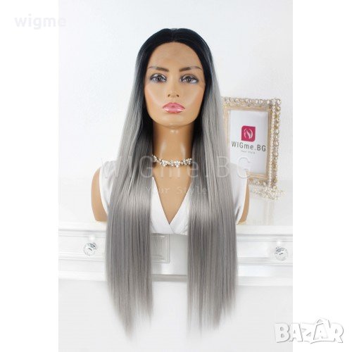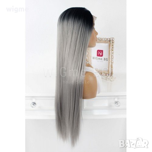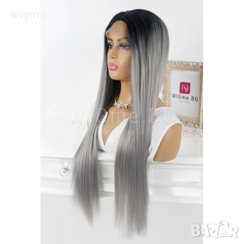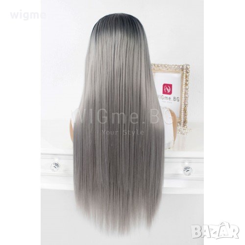 Дълга права сива лейс фронт перука Грейс