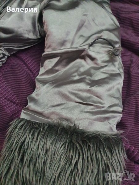 Страхотно ново двулицево палто. Купувано в Италия. Цвят сребрист. Има стягащи коланчета по ръкавите, на талия и в долната част на палтото.