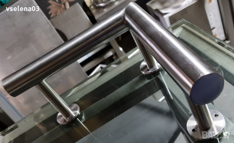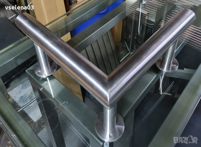 Чисто нов от неръждаема стомана-за магазин предпазва витрината от блъскащите колички,разбирасе става и за градината .Може да стои навън няма покритие или боя естествен метал,не го лови магнит.Издаваме опростена фактура.