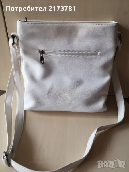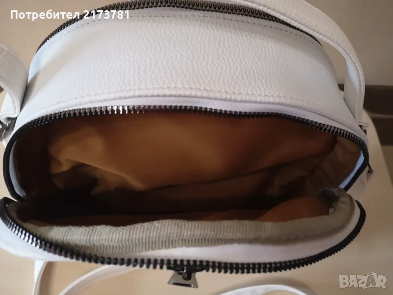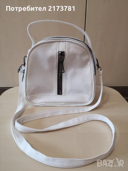 2 - Бяла чанта/ раница - нова, еко кожа, с две прегради, един вътрешен и два външни джоба с ципове, с къса и дълга дръжка, може да стане и като раничка, минимална забележка - цена - 10,00 лв.