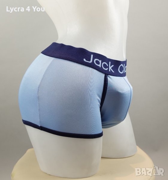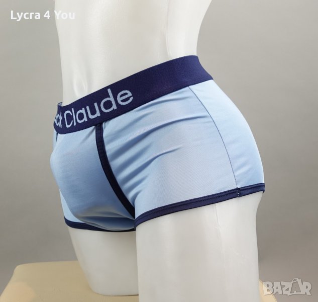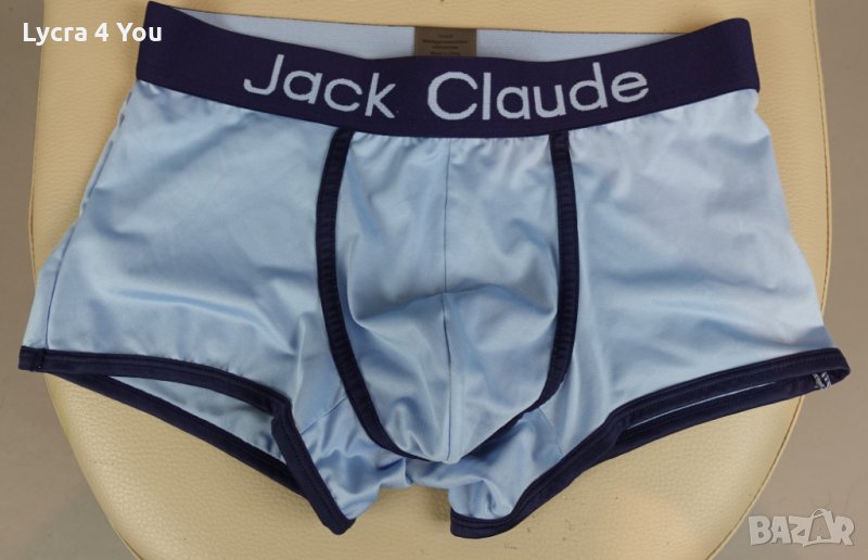 Като нов (без хартиен етикет) мъжки боксер Jack Claude S (small) размер от качетсвена приятна на допир материя в два цвята (светло и тъмно син), с оформен джоб отпред и широк удобен ластичен колан.