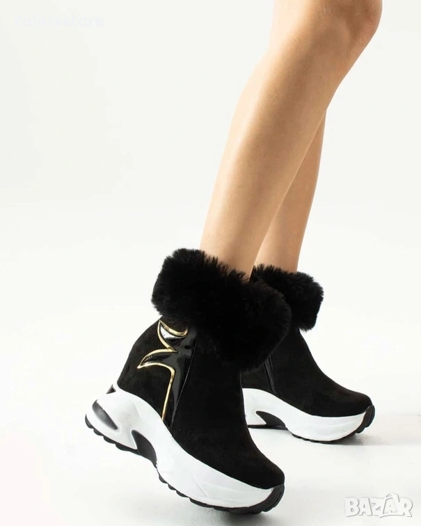 Боти на платформа - черен велур с пух - BH2025 → Обява 35677956