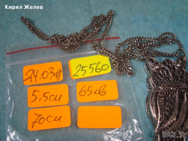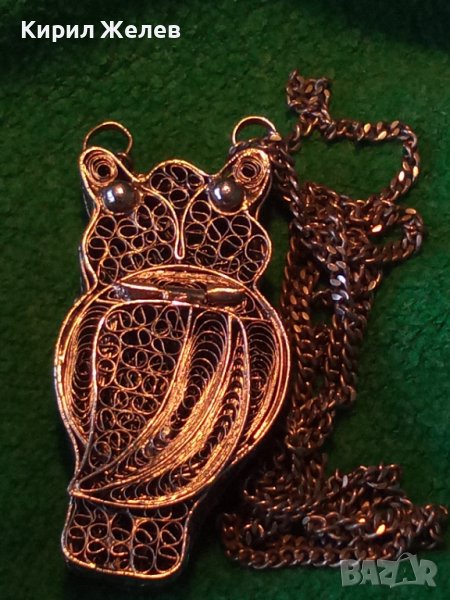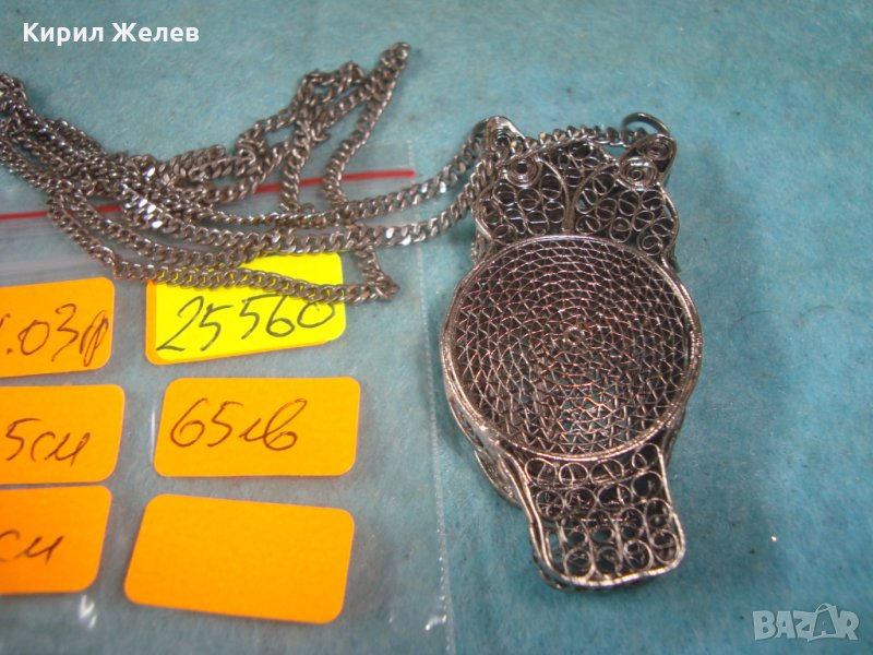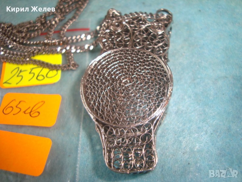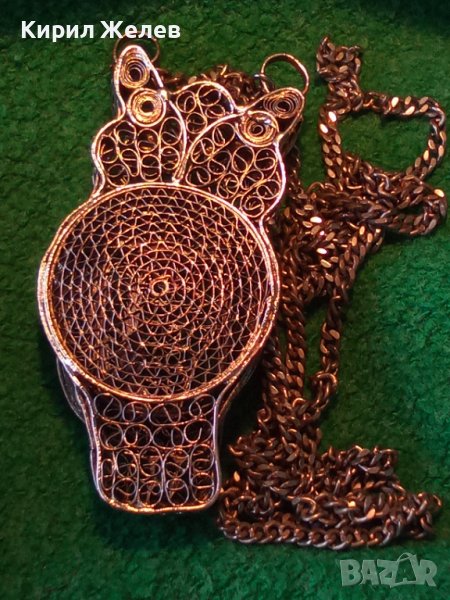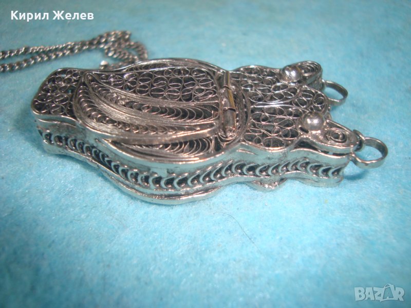 ПОСРЕБРЕН БУХАЛ ФИЛИГРАНЕН със ЗДРАВО СИНДЖИРЧЕ ФИГУРАЛЕН АРТ ДЕКО МЕДАЛЬОН БЛАГОРОДНА СТОМАНА 25560