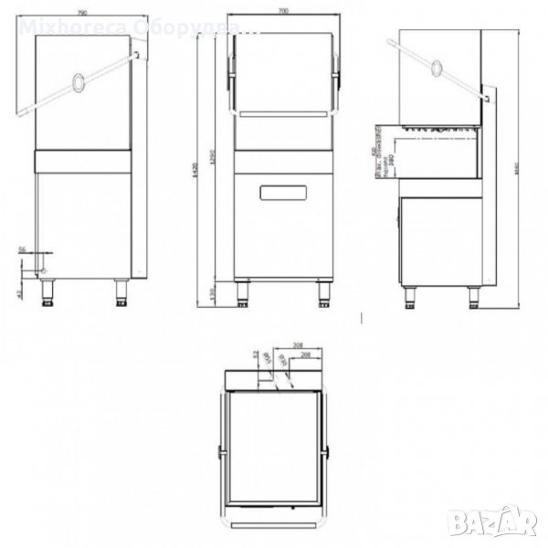 Конзолна съдомиялна с качулка - 400V - С помпа за препарат за изплакване - 400 V