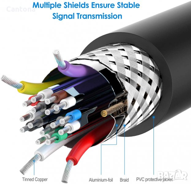 - Позлатените проводници са устойчиви на корозия и увеличават свързаността. Вътрешната плетена екранировка от фолио намалява смущенията и подобрява качеството на сигнала