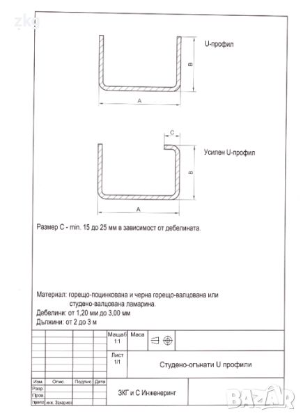 Поц. Ламарина - 2.00 х 30х50х30 х 2000мм – 15.00 лв за брой;