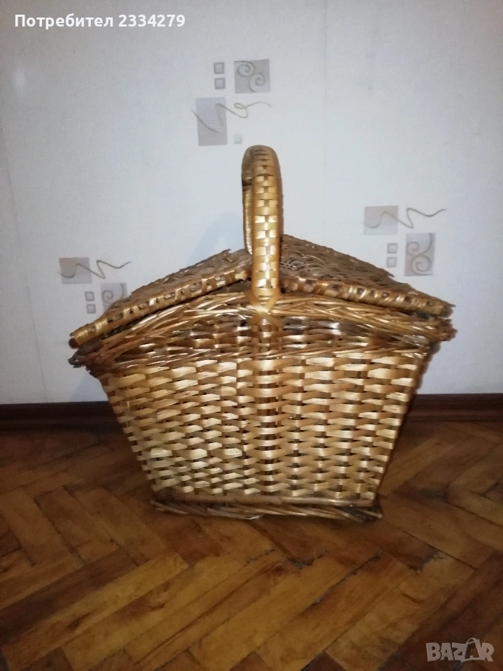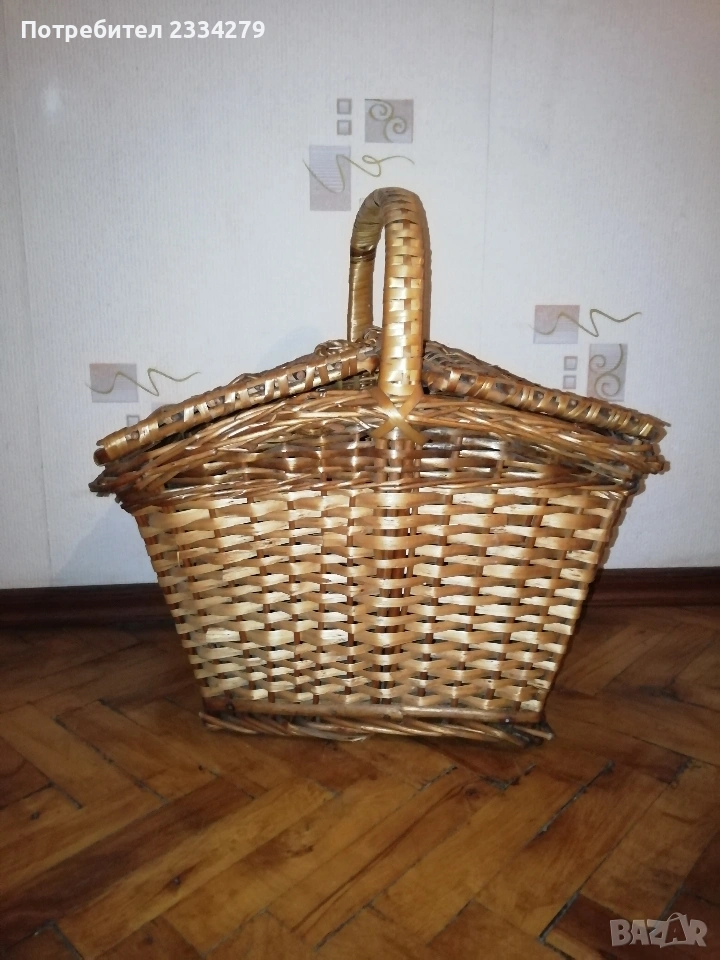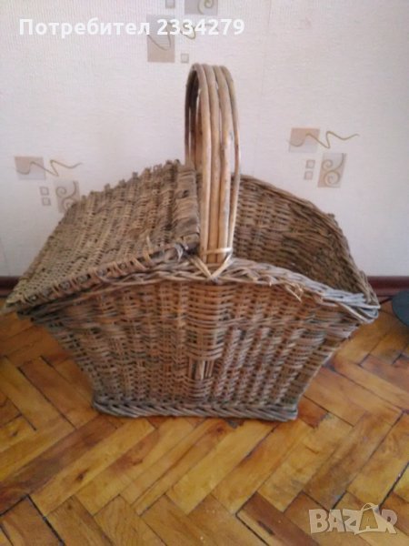 Стари предмети кошница ръчно плетена с цяло дървено дъно и