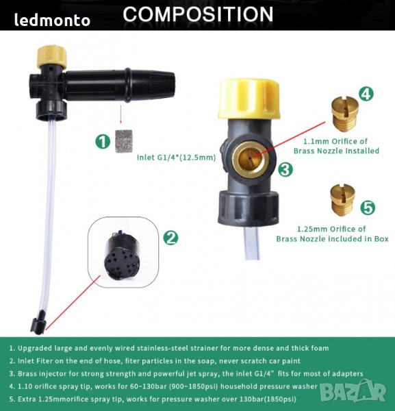 1. Пенообразуващо устройството (дюза за пяна) , Max 180bar / 2320psi