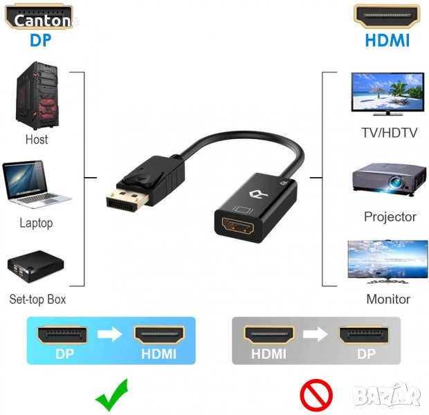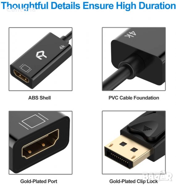 - Забележка: Това е еднопосочен конвертор DP към HDMI, а не HDMI към DP. Позлатените конектори са устойчиви на корозия, осигуряват издръжливост и подобряват предаването на сигнала