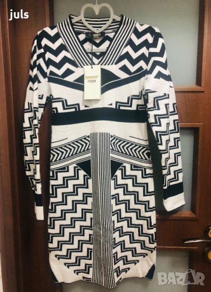 Чисто нова рокля Fendi с етикет, отговаря за M размер. Дължина: 87 см. От мишница до мишница едностранно: 42 см. Дължина на ръкава от рамото: 59 см. Плътна много разтеглива материя тип трико, подходяща за пролет-есен и по-топла зима.