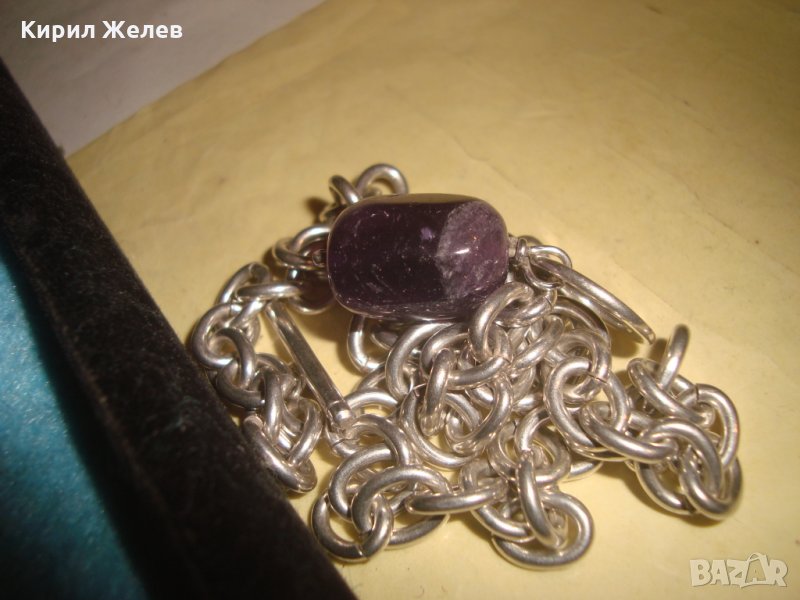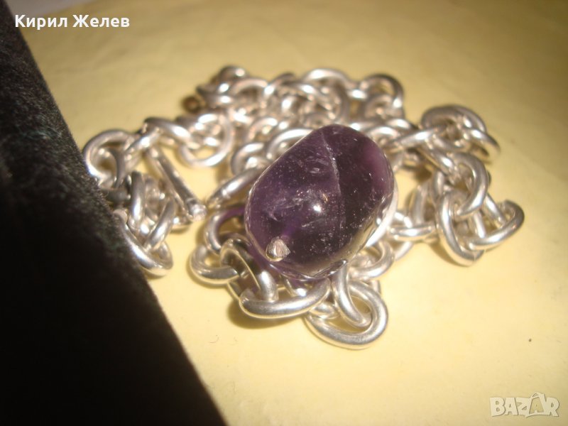 СРЕБЪРНО КОЛИЕ ЛАНЕЦ с ЕДЪР ШЛИФОВАН ЮВЕЛИРНО АМЕТИСТ БУТИКОВО БИЖУ ВИСОКА ПРОБА СРЕБРО 25636