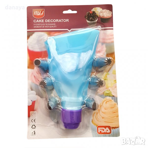 Комплект сладкарски накрайници заедно с пош плюс адаптор. Накрайниците са 6 на брой и всеки от тях прави различна форма. Чудесни са за украса на торти и десерти.