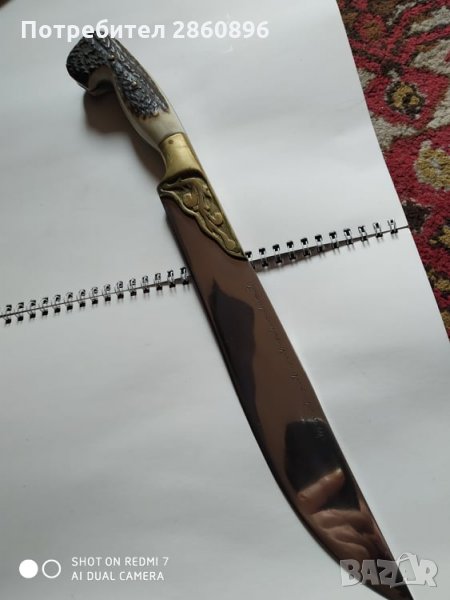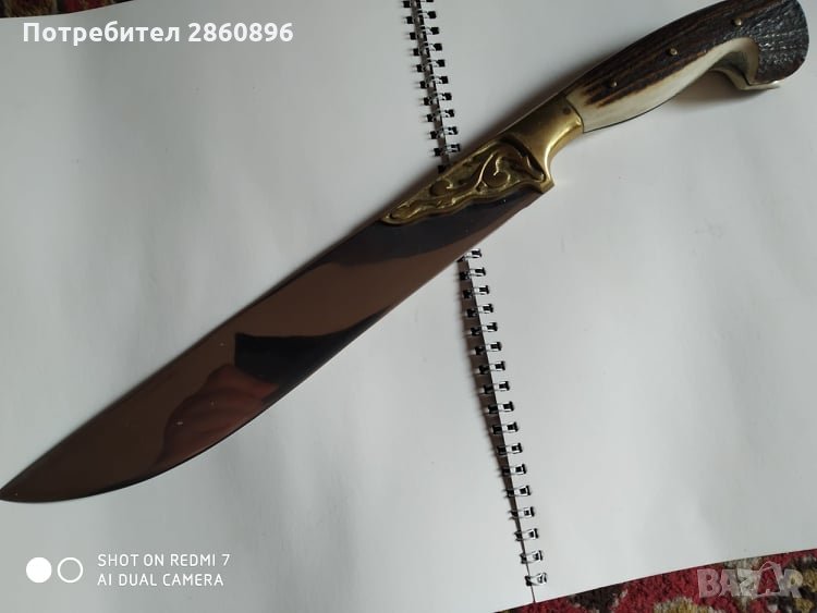 изработена от Еленов рог! Предлага се с кания от естествена кожа,телешки блан.Ножа