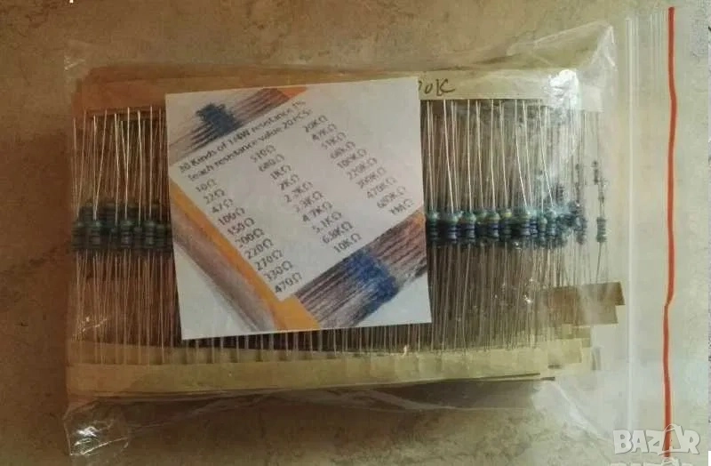 3. Продавам комплект от 600 броя резистори. 30 различни стойности, по 20 броя от всеки вид. Мощност 0.25W.