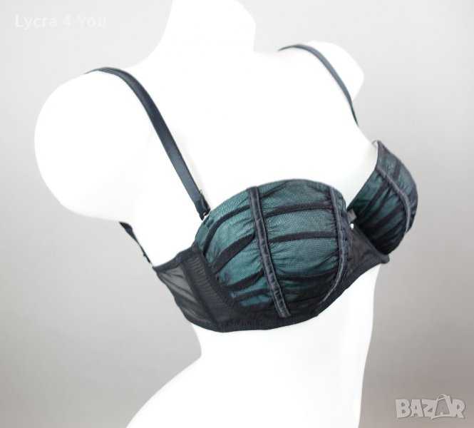 Черен сутиен с тюркоазено зелени чашки покрити с тюл 75В → Обява 35710269