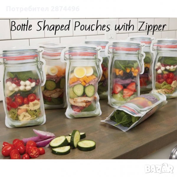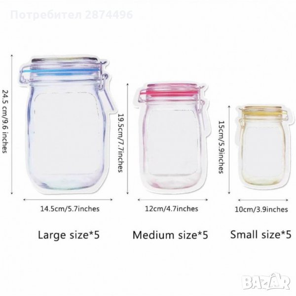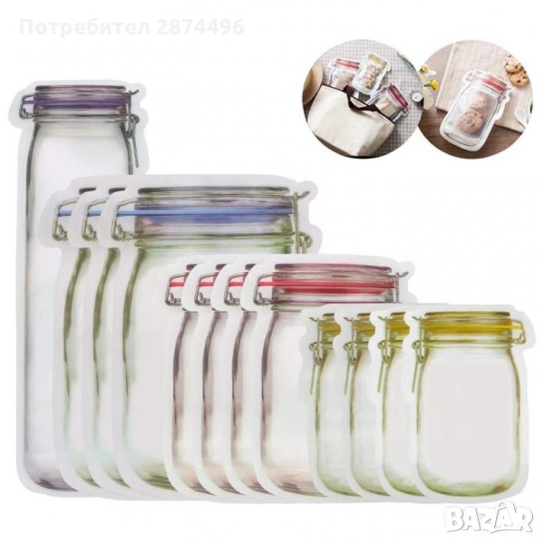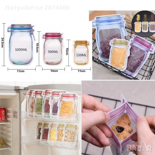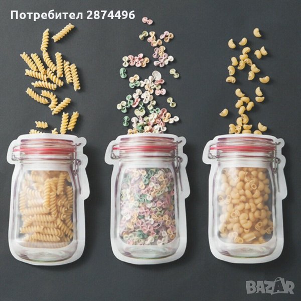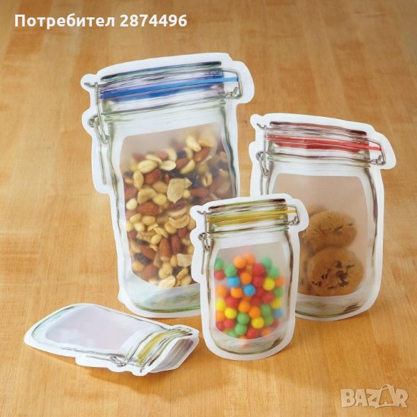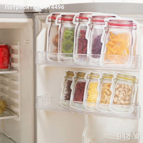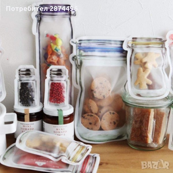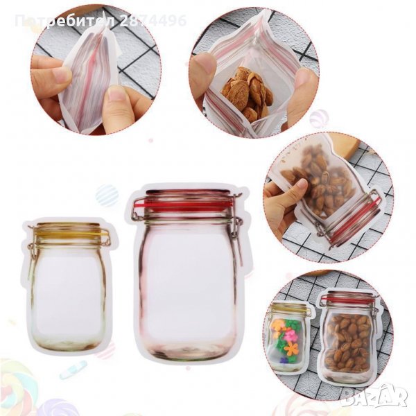 Предлагаме 2 комплекта от тези клипс торбички за съхранение с форма на бурканчета Mason Jar: