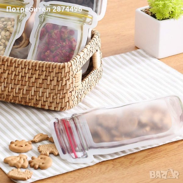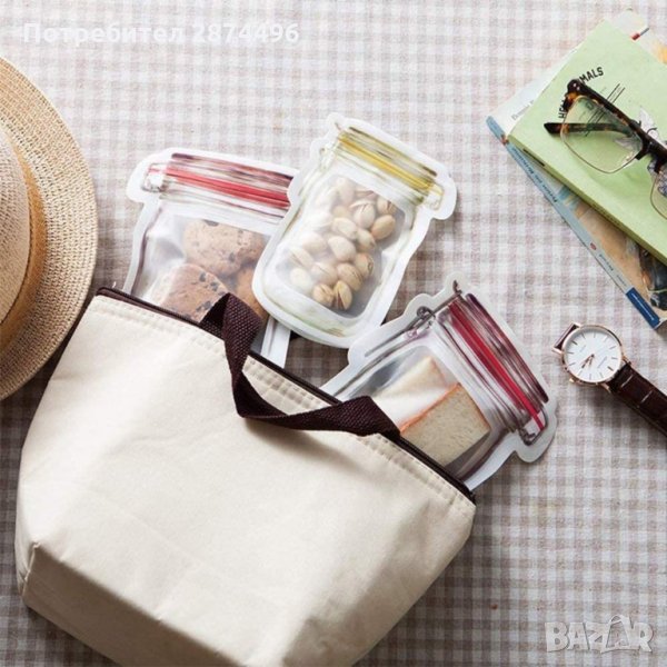 Тези удобни торбички са предназначени за съхранение на различни хранителни продукти - бисквити, ядки, зърнени закуски и др. Те се затварят с плътен пластмасов цип, който не допуска въздух и влага в торбичката и така запазва храната свежа за по-дълго време.