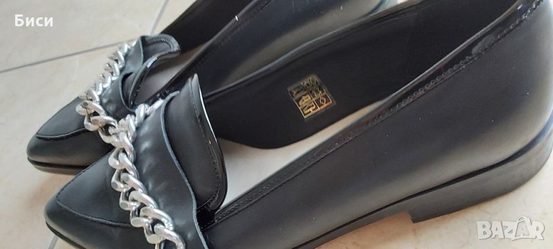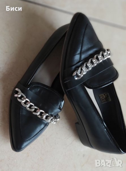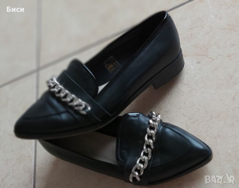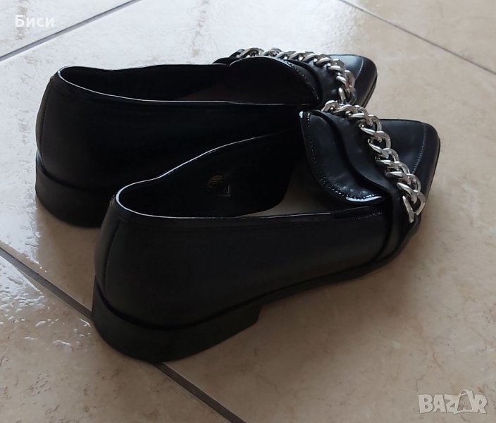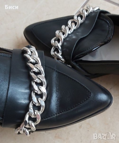 Маркови нови дамски модерни обувки от естествена кожа н.37 ,24 см стелка/отговарят си на номера/,сребристи метални елементи.