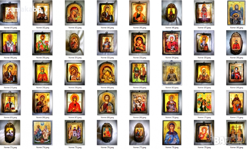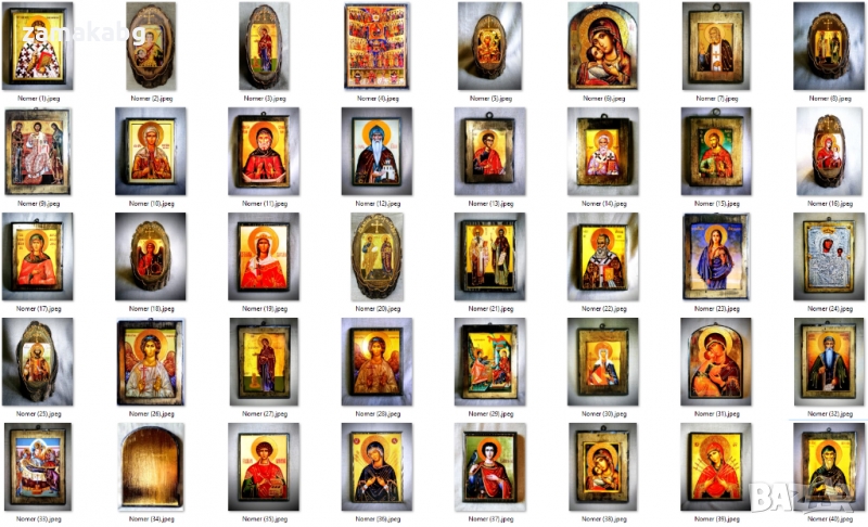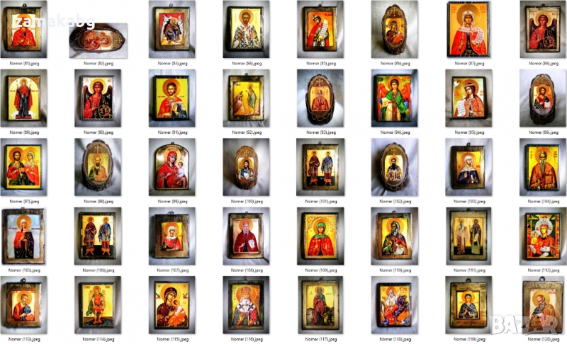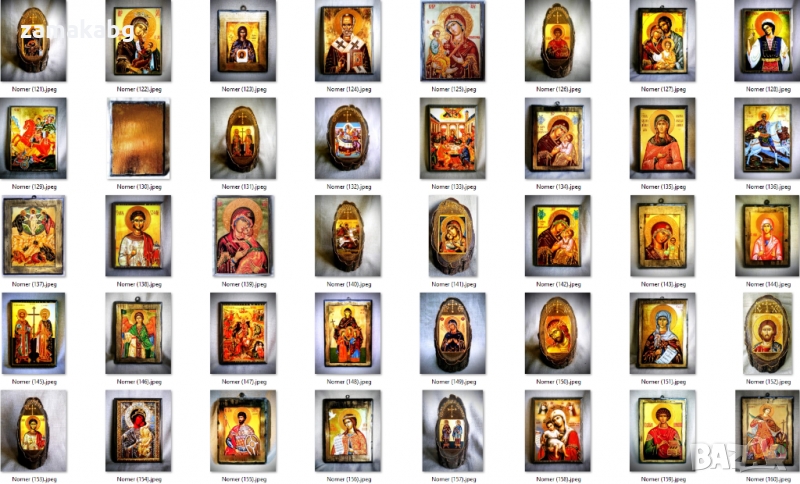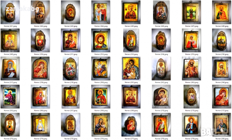 Тук може да откриете богат избор от икони на светци и библейски сцени в различни модели и размери. Изработваме и икони по индивидуална поръчка.