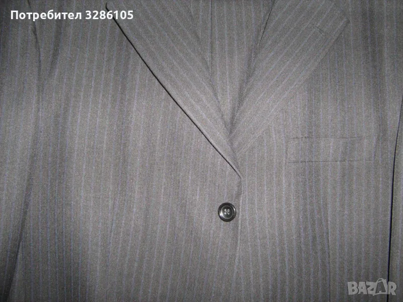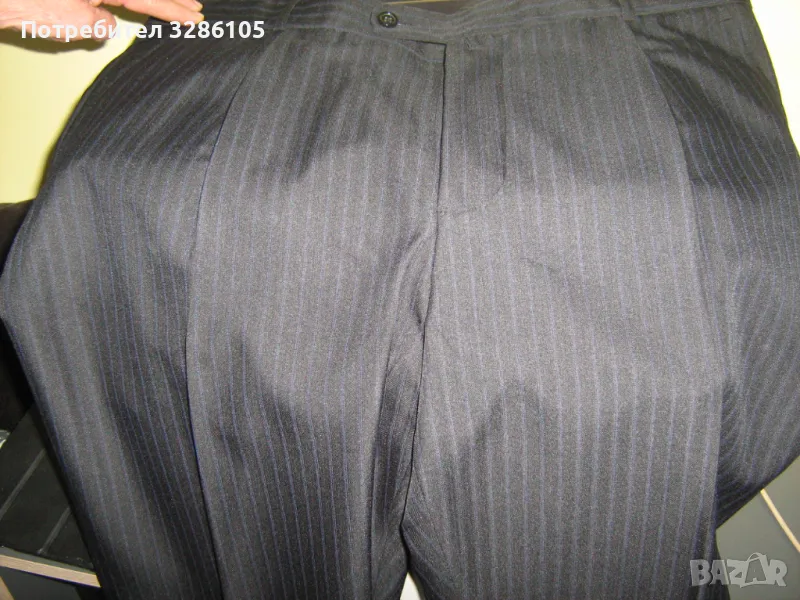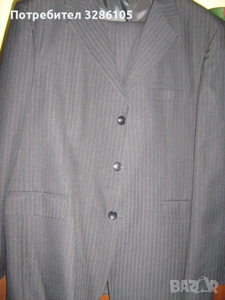 костюм-тъмно синъо райе панталон прав с обиколка 106 см сако с 3 броя вътрешни джобове и с 3 броя копчета