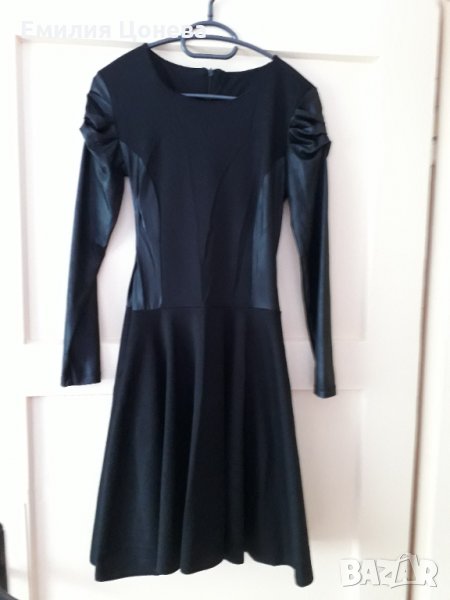 Черна рокличка с кожени кокетни ръкави. Разкроена от талията, прикрива несъвършенства. Подходяща за размер С и М. Дължина 85 см.