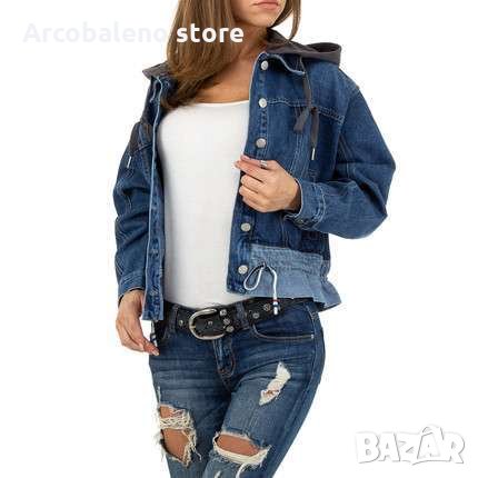 Оверсайз дънково яке от пран деним със сваляща се качулка.