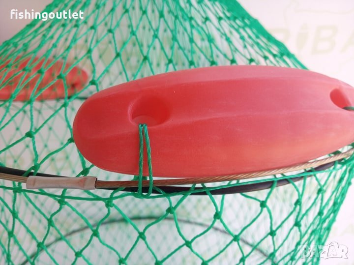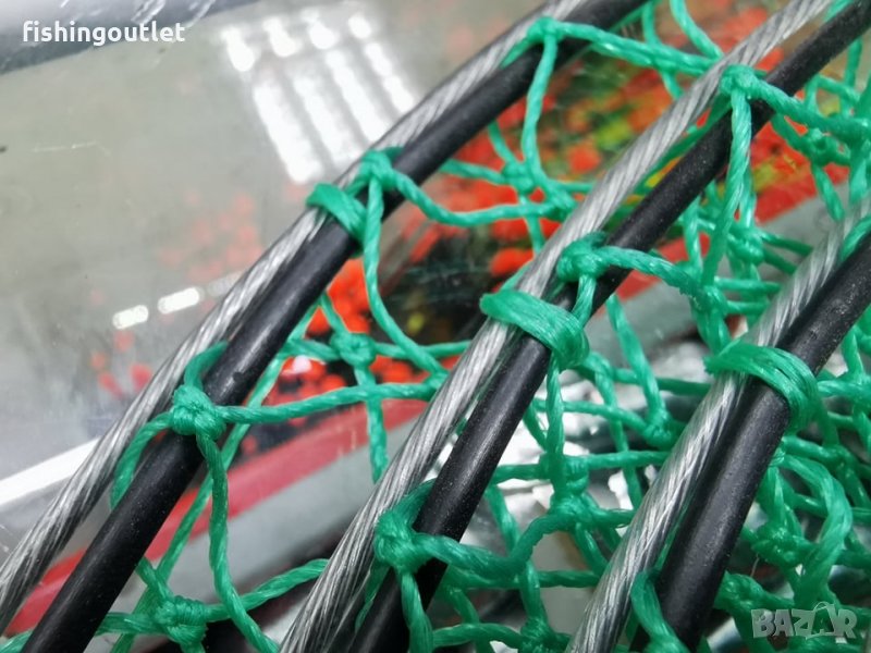 Изработен е от дебела монифилна мрежа като обръчите са укрепени със стоманнено въже .