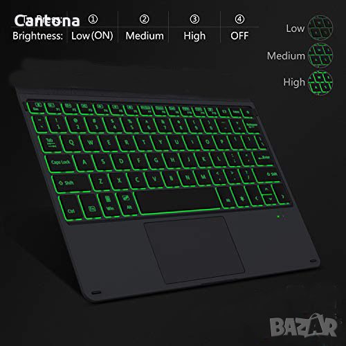 Bluetooth 5.1 ултра тънка клавиатура с тъчпад, акумулаторна батерия и зелена подсветка