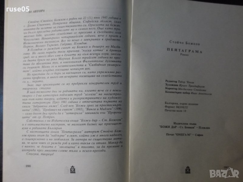 Книга "Пентаграма - Стойчо Божков" с посвещение - 288 стр. → Обява 35723035