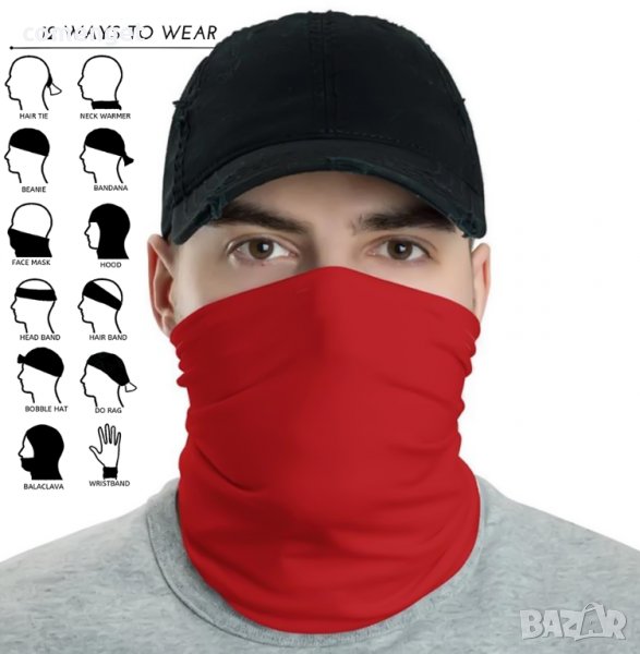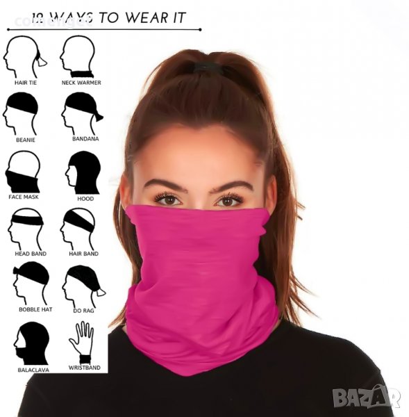 УНИСЕКС изчистена бандана 12 в 1 !!! Нахлузва се директно през главата или се слага на китката. Подходяща е за употреба като FACE MASK / МАСКА за лице.