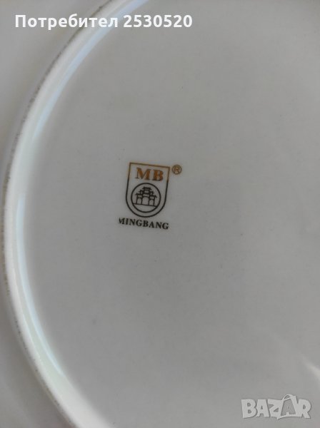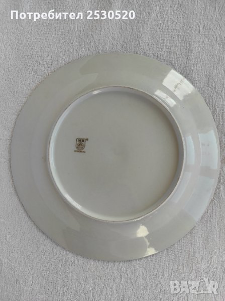 Порцеланова чиния в синьо,бяло и златно , като белите участъци са релефни . Глазирана.Маркирана - MB Mingbang.