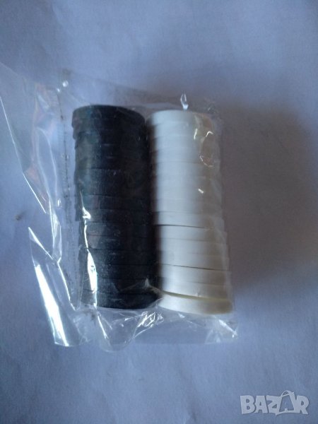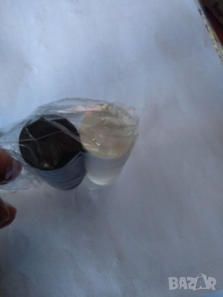 Средни по 33мм-със зарчета са,по 7лвНови! Има и не използвани, от времето на соца,бакелитови, но белите са пожълтели, по крайщата. В процеса на игра, жълтото се изтрива. Виждат се на снимките. Към тях подарявам 2 зарчета,пак от онова време. Еконт или лично за Сф.