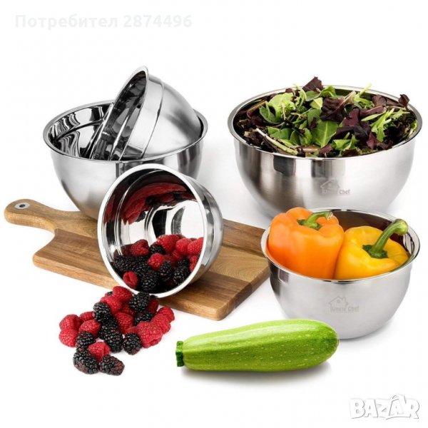 Голяма метална купа, идеална за разбъркване, разбиване и замесване на тесто. В нея можете да приготвите и поднесете свежа салата, плодове или хляб. Подходяща за съхранение на продукти в хладилника, ако ѝ сложите капак.